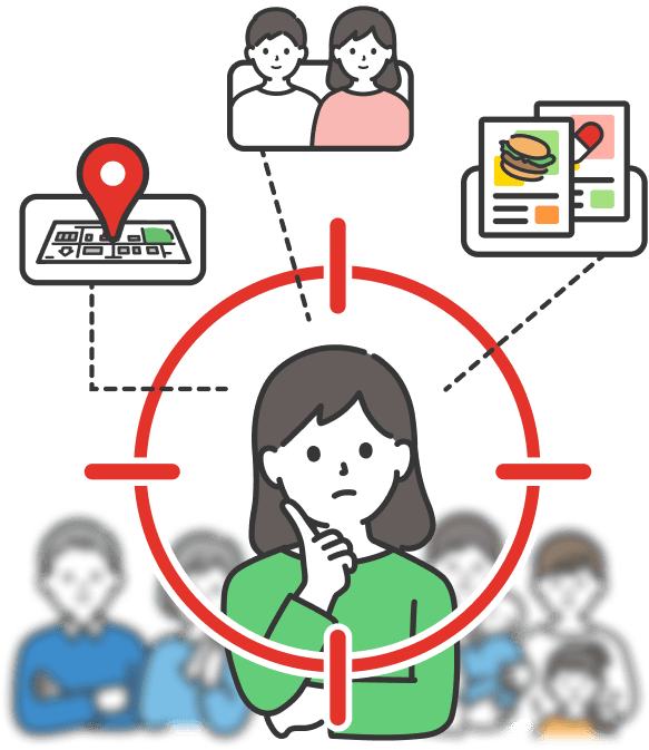 ターゲティング広告が可能商品の特性や販促施策に合わせて、 エリアターゲティングをはじめとした柔軟な配信設定が可能です。 無駄打ちを減らし、効率的な商品訴求を実現します。