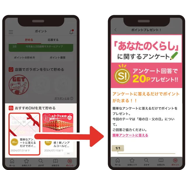 電子DM + アンケートShufoo!アプリのポイント会員約280万人に対して、DM形式でアンケート調査をおこなえます。広告掲載後の態度変容調査に最適なメニューです。