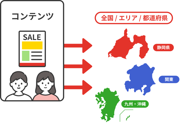 チラシスポットプラン全国エリア都道府県単位でエリアを指定し、コンテンツ配信(静止画)ができるプランです。