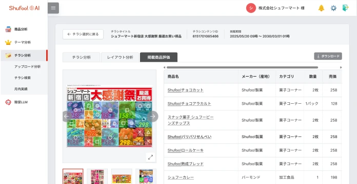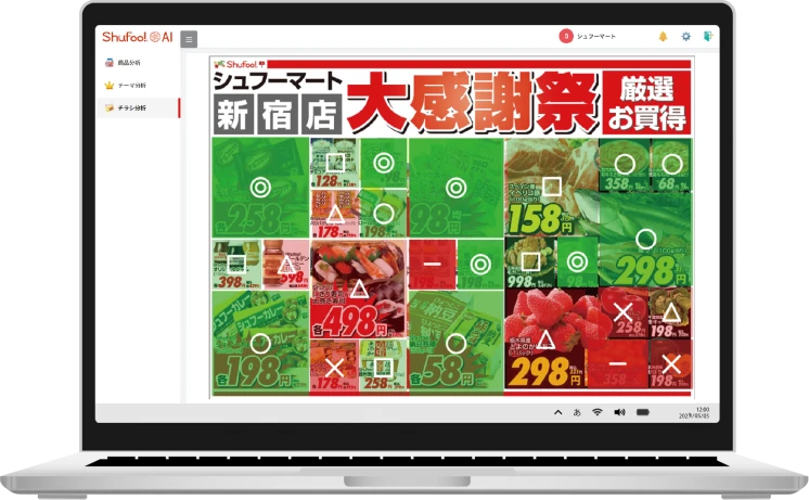 配信前のチラシをアップロードができます。アップロード後にチラシ分析をすることで、事前にチラシ内の価格優位性を把握。配信前の価格調整が可能となります。