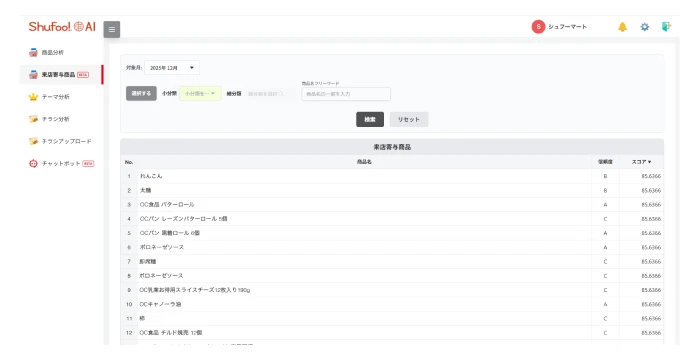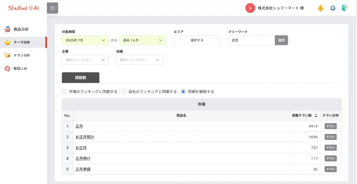 指定した時期/エリア/企業におけるチラシで、多く使われていた販促企画テーマを調べることができます。