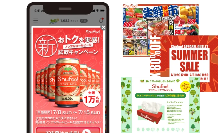 Shufoo!では、チラシや広告を通して生活者にリーチするだけでなく、閲覧から来店までの過程を可視化し、販促施策の改善まで伴走します。