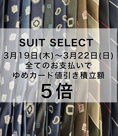 【SUIT SELECT】3/27(金)から4日間!ゆ… 3/27(金)~3/31(火)の5日間は スーパー特紹会…