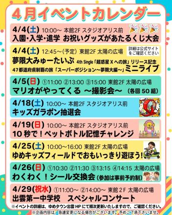 4月イベントカレンダー公開!!! ゆめタウン出雲より4月のイベントカレンダーを… 3日前