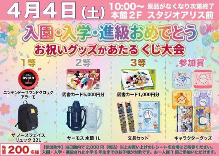 4/4(土)入園・入学・新級おめでとう… ゆめタウン出雲より今週末のイベントお知らせし… 2日前