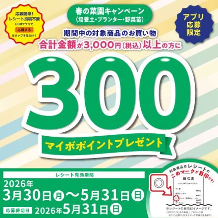 春の菜園キャンペーン(培養土・プラン… レシート有効期間中にDCM(ネット店舗は除く… 1日前