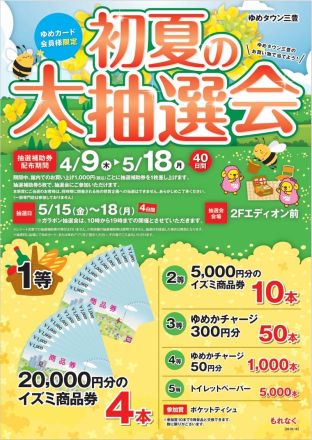 ゆめタウン三豊のお買い物で当てよう!… 【抽選補助券配布期間】4/9(木)~5/18(月) … 10時間前