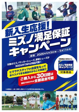 新入生応援!ミズノ満足保証キャンペー… ただいま、ヒマラヤスポーツでは「ミズノ満足補… 9時間前