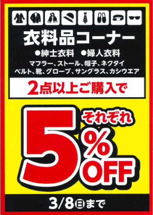 (エクセル)衣料品コーナーセールのご… こんにちは! ただいまエクセルでは紳士、婦人…