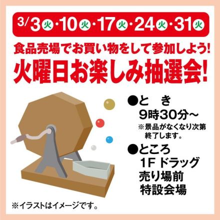 火曜日お楽しみ抽選会! 食品売場でお買い物をして参加しよう! 【火… 19時間前