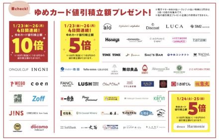 【予告】【専門店】1/23(金)〜26(月… 1/23(金)~26(月)ゆめカード値引積立額10~… 9時間前