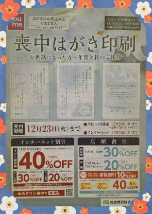 喪中はがき印刷承り中 ただいま2階子供服売場ゆめキッズでは2026年度…