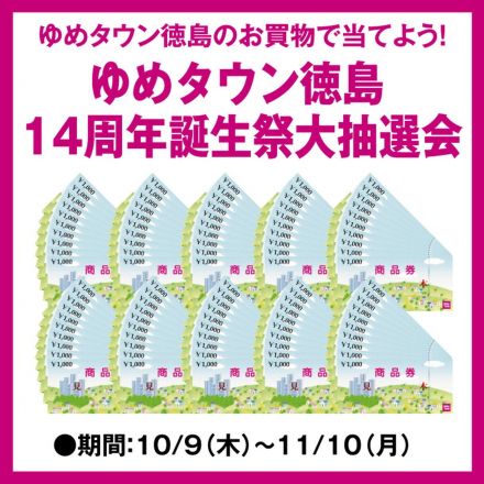 「ゆめタウン徳島 14周年誕生祭 大抽選… ゆめタウン徳島のお買物で当てよう! 「ゆめ… 2日前