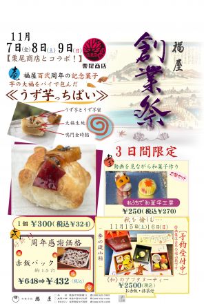 本日よりスタート!和菓子処福屋102周… 1F 和菓子処 福屋 創業102周年記念 創業… 9時間前