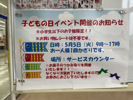 5月5日子どもの日 イベント開催のお知… スーパーセンターオークワ御所店です(^^)/ … 2日前