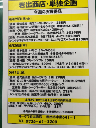 オークワ 岩出西店のチラシ・セール情報(和歌山県岩出市)