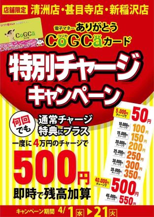 電子マネー CoGCa新規入会 チャージ キ… 電子マネー CoGCa新規入会 チャージ キャンペー…