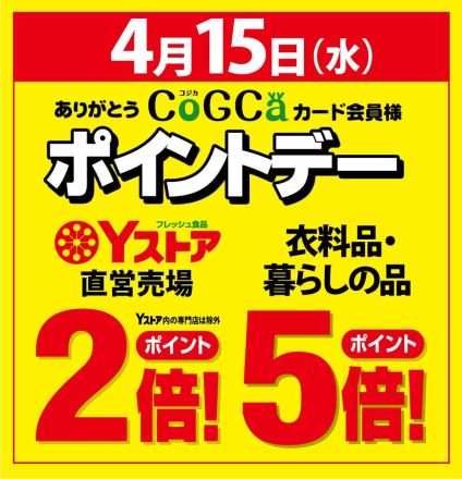 4月15日(水)は、ポイントデー開催 4月15日(水)は、ポイントデー開催 ありがと… 2時間前