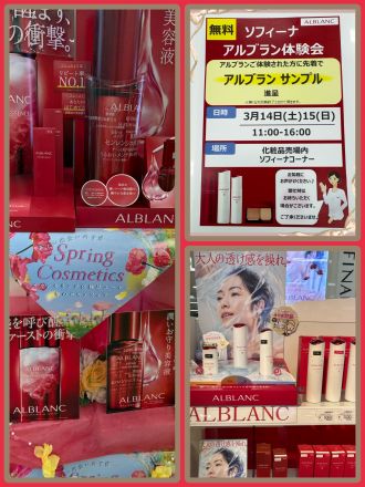 ソフィーナアルブラン体験会 化粧品コーナーよりお知らせです♪ 3月14~3… 1日前