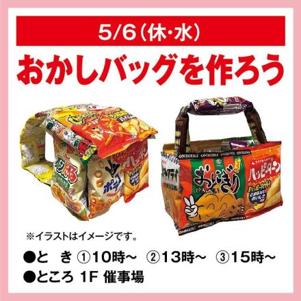 おかしバッグを作ろう! こんにちは! ゴールデンウイークイベントの… 2日前