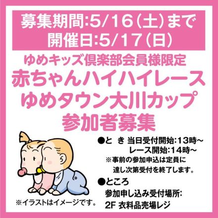 【参加者募集中】ハイハイレース開催し… こんにちは! 大川店人気企画! 赤ちゃんハ… 16時間前