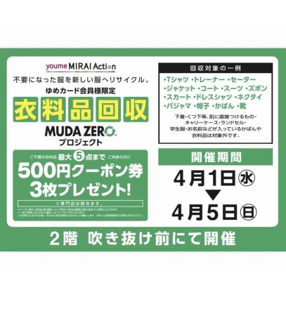 \衣料品回収セールのお知らせ/ 【お知らせ】 衣料品回収 MUDAZEROプロジ…