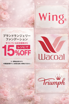 ブランドランファン 15%OFFセールの… 2階 婦人肌着売場 ブランドランファンコーナー… 1日前