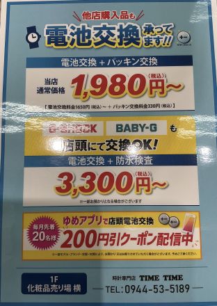 腕時計の電池交換承ります! 1階タイムタイムです ご自宅に眠っているお… 1日前