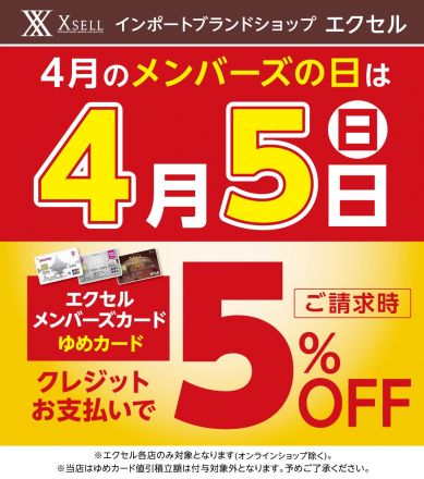 【エクセル】4/5(日)はメンバーズの… こんにちは! 新館1階 インポートブランドシ… 1日前