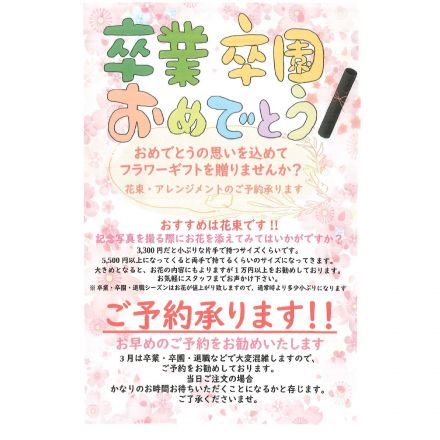 【フラワーサークル】花束・アレンジメ… こんにちは!フラワーサークルです! 卒業・… 18時間前