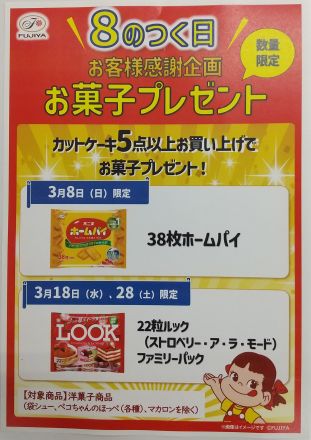お客様感謝企画のご案内です。 こんにちは。1階 洋菓子店 不二家です。 お客… 1日前