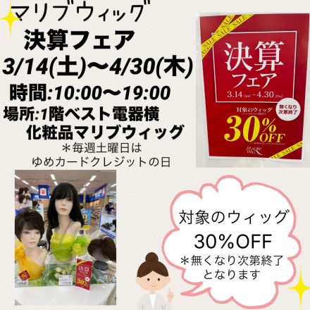 かつら専門店よりご案内 こんにちは~♪ 1階ベスト電器横、 かつら専…