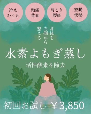 2F エアリアル 話題の水素よもぎ蒸し… 当サロンでは、通常のよもぎ蒸しに水素をプラス…