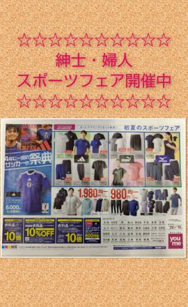 初夏のスポーツフェア 2階紳士服スポーツレットコーナー および2階サ… 2時間前