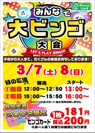 パスカランド 週末イベント開催 大好評のみんなで大ビンゴ大会を開催!! ☆… 1日前
