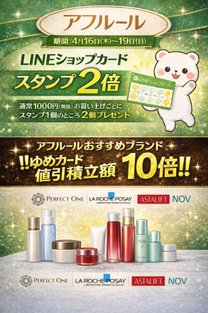 コスメショップ「アフルール」ポイント… ゆめタウン博多1階、レストラン街横 コスメシ… 1日前