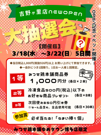【みつせ鶏本舗】イベント第一弾!!! こんにちは♪ みつせ鶏本舗ゆめタウン博多店… 1日前