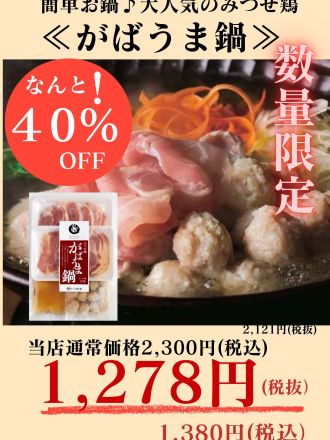 ロングセラー商品 ≪がばうま鍋が40%… こんにちは♪ 1階【みつせ鶏本舗】です。 … 12時間前