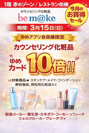 今月のお買得セール♪ 1階赤のゾーン レストラン街横 カウンセリ… 20時間前