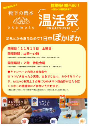 靴下の岡本「温活祭」イベントのお知ら… 2階サーティーワン横催事売場より 靴下の岡… 2日前