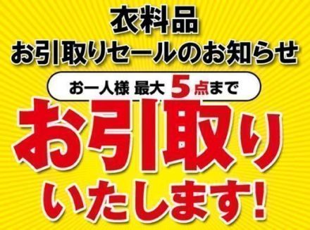 お待たせしました★衣料品お引取りセー… \お待たせしました/ 衣料品お引取りセール … 3日前