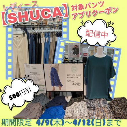 【SHUCA】500円引きクーポン配信中♪ ゆめタウン博多 2F婦人服売場 【SHUCA】コーナ… 2日前