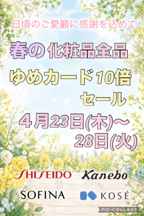 化粧品全品10倍セールのお知らせ こんにちは! いつも八女店化粧品コーナーをご… 2日前