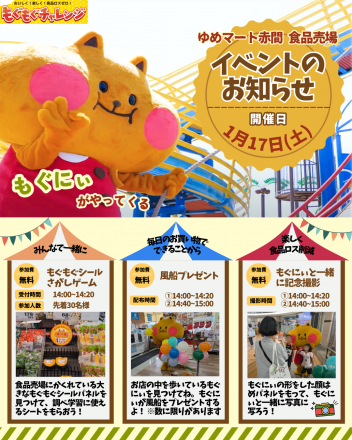 もぐにい来店イベント! 1月17日もぐにい来店!ぜひゆめマート赤間の楽… 44分前