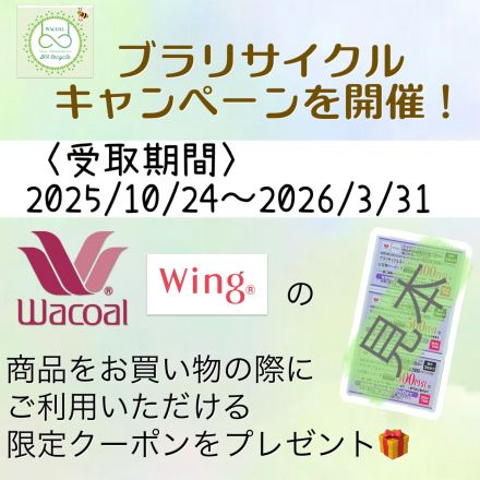 【3月末まで】ブラリサイクルを開催中… 直営 2階 ワコール・ウィングコーナーより「ブ… 4日前