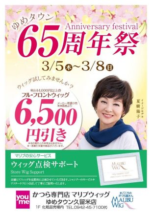 マリブウィッグよりお知らせです!!! こんにちは ゆめタウン久留米1階 化粧品売場横… 1日前