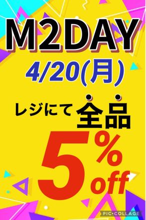こんにちは! 2階 M2です☆ 毎月20日はM2デー♪ 全品レジにて5%OFFです!! 新作もセール品もソックス等雑貨も全て5%OFF致します! 20日(月)のみなっておりますので、この機会にぜひご来店下さいませ(^^) 。.。:+* ゚ ゜゚ *+:。.。:+* ゚ ゜゚ *+:。.。.。:+* ゚ ゜゚ *+:。.。:+* ゚ ゜゚ * ゆめタウン久留米 M2 0942457267 Instagramはこちらから ↓↓↓↓↓ https://www.instagram.com/emuni_kurumeyumetown?igsh=MXUwcjFkcTl3bHQ1dA==