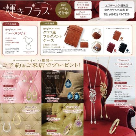 新作ジュエリー発表会!エステール久留… ジュエリー展示販売会『輝きプラス』開催! … 1日前