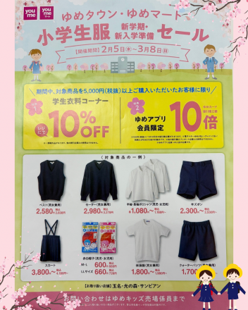 新入学・新学期準備セール開催! こんにちは♪ 本館2階 子供服コーナーゆめキッ… 2日前