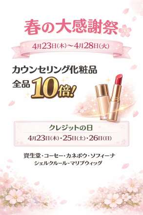 ☆カウンセリング化粧品10倍☆ こんにちは(^^) 1階 カウンセリング化粧品コ… 5日前